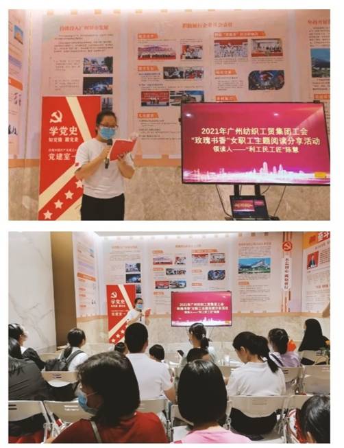 主題二“弘揚(yáng)工匠精神”:廣州輕工集團(tuán)十大最美工匠之一、利工民陳慧技師創(chuàng)新工作室的陳慧作為“玫瑰書香”女職工主題閱讀活動(dòng)的領(lǐng)讀人,為大家領(lǐng)讀了《把一切獻(xiàn)給黨》選段,同時(shí)分享了自己對(duì)利工民產(chǎn)品20年的改良創(chuàng)新歷程。利工民黨委副書記、工會(huì)主席陳惠瓊揮毫?xí)鴮憽敖韼焦矈^進(jìn),永遠(yuǎn)跟黨走”。