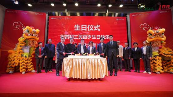 生日儀式點(diǎn)燃了整個(gè)現(xiàn)場。特邀領(lǐng)導(dǎo)嘉賓共同上臺(tái),大家一起共祝利工民100周年生日快樂!