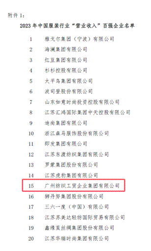 7月22日,《2023年中國服裝行業(yè)百強企業(yè)》榜單發(fā)布,紡織公司連續(xù)三年登榜,位列2023年中國服裝行業(yè)“營業(yè)收入”百強企業(yè)第15名!