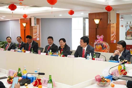 領(lǐng)導(dǎo)一行在公司15樓會議室舉行了開工座談會。公司黨委書記、董事長簡瑋儀向集團(tuán)領(lǐng)導(dǎo)們匯報(bào)了新年首月紡織公司主動出擊,智鏈全球,以高質(zhì)量發(fā)展新成效取得了“開門紅”。集團(tuán)的大力支持將激勵紡織公司繼續(xù)突破,向新向上向未來。