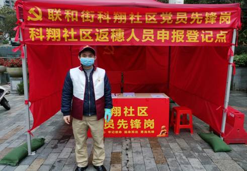2月14日,黨員廖泳湖參加單位所在社區(qū)黃埔區(qū)聯(lián)和街道科翔社區(qū)防疫志愿活動(dòng),協(xié)助進(jìn)行體溫檢測(cè),指引返穗居民按要求填寫個(gè)人情況登記表,派發(fā)宣傳單張等。