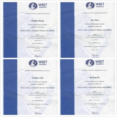 團(tuán)隊(duì)成員全部通過(guò)WSET專(zhuān)業(yè)二級(jí)品酒師