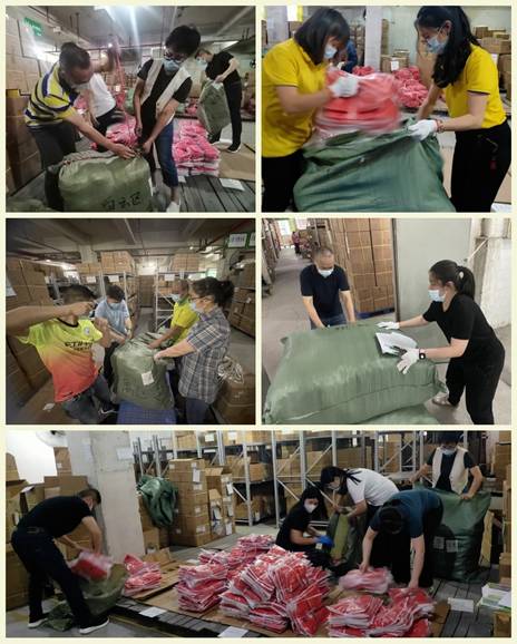 4月11日上午11時許,當(dāng)紡織公司收到廣州輕工集團要求定制5萬件印有“我是共產(chǎn)黨員”字樣的志愿紅馬甲任務(wù)后,公司黨委高度重視,第一時間指導(dǎo)利工民組建黨員團員突擊隊和生產(chǎn)專班,制訂詳細(xì)工作計劃及分工。一周內(nèi)出這么大批的貨是一個不小的挑戰(zhàn),而且馬甲貨源還分散在廣州、佛山及浙江一些城市的倉庫中。如何才能以最快速度調(diào)集貨源、如何根據(jù)需求安排好每日出貨量、如何精準(zhǔn)配送到每條街道……這些現(xiàn)實的問題都擺在了工作專班面前。面對這些問題,利工民總經(jīng)理鄭力強迅速理清思路、靠前指揮,一邊率領(lǐng)工作專班與上級部門、供應(yīng)商保持密切聯(lián)系,對接好各個工作環(huán)節(jié);一邊積極做好內(nèi)部人員調(diào)配工作,確保高效完成出貨任務(wù)。