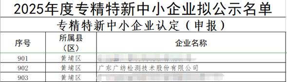 近日,從廣州工信傳來振奮人心的喜訊,廣東廣紡檢測技術股份有限公司(以下簡稱“廣紡檢測”)憑借良好的綜合實力與持續(xù)的創(chuàng)新發(fā)展,順利通過“2025年專精特新中小企業(yè)”復核認定,再次彰顯了其在行業(yè)內的特色地位與強勁發(fā)展?jié)摿Α?/DIV>