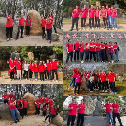 登山當天風和日麗,碧空如洗。上午十點,公司全體活動人員身著統(tǒng)一的紅色文化衫在帽峰山天湖集合,整裝待發(fā)。隨著領導班子一聲令下,登高活動正式拉開序幕。大家三五成群、步伐矯健,奮力朝著山頂前進。