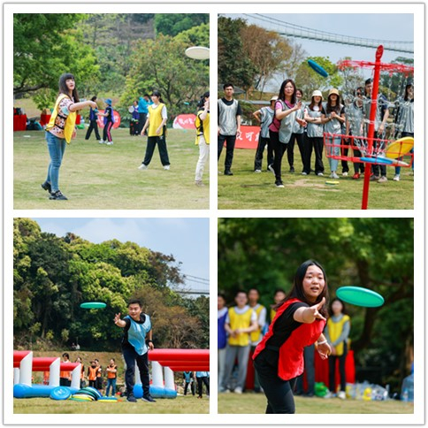 隨著哨聲吹響,各小組開始進行飛盤九宮格、飛盤高爾夫和飛盤躲避賽三項競技比賽,各組隊員在隊長的組織下共同進行戰(zhàn)略部署、排兵布陣,全身心投入到運動項目中。五顏六色的飛盤在空中劃過,隊員們時而鼓掌歡呼,時而興奮跳躍。特別是躲避盤的團體賽中,隊友們合力分工,每個人都找好自己的位置,默契配合,奮發(fā)傳接飛盤,情緒高漲,激情滿滿。