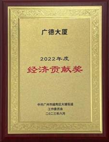 2023年6月26日,中共廣州市越秀區(qū)大塘街道工作委員會授予廣德大廈“2022年度經(jīng)濟(jì)貢獻(xiàn)獎”。