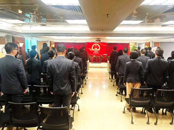 上午9點(diǎn),公司在廣德大廈15樓禮堂舉行了升國(guó)旗儀式,屬下企業(yè)以視頻方式參與到升旗儀式中。公司副總經(jīng)理林哲浩代表領(lǐng)導(dǎo)班子在儀式上致辭。他指出,2024年,是中華人民共和國(guó)成立75周年,是實(shí)現(xiàn)“十四五”規(guī)劃目標(biāo)任務(wù)的關(guān)鍵一年,希望大家以龍騰虎躍、魚(yú)躍龍門(mén)的干勁闖勁,開(kāi)拓創(chuàng)新、拼搏進(jìn)取,以?xún)?yōu)異的成績(jī)?yōu)樽鎳?guó)的發(fā)展作出更大貢獻(xiàn)。