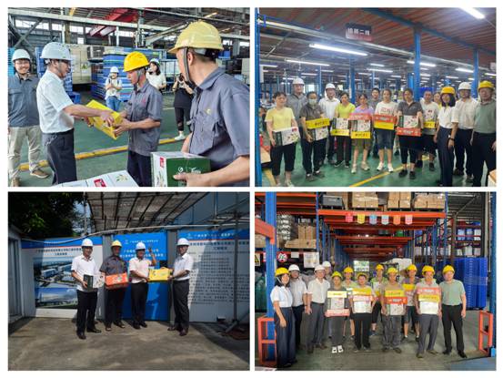 酷暑夏日持續(xù)高溫,廣州進(jìn)入“燒烤”模式。為切實(shí)做好高溫天氣下廣大職工的勞動(dòng)保護(hù)和防暑降溫工作,紡織公司領(lǐng)導(dǎo)班子帶隊(duì)深入企業(yè)、重點(diǎn)項(xiàng)目工地、廠房、倉(cāng)庫(kù)看望慰問辛勤工作的一線職工,為他們送上防暑降溫品。在這個(gè)考驗(yàn)意志與耐力的季節(jié)里,紡織公司工會(huì)持續(xù)開展“夏送清涼”活動(dòng),讓職工們感受到組織的關(guān)心與關(guān)愛。